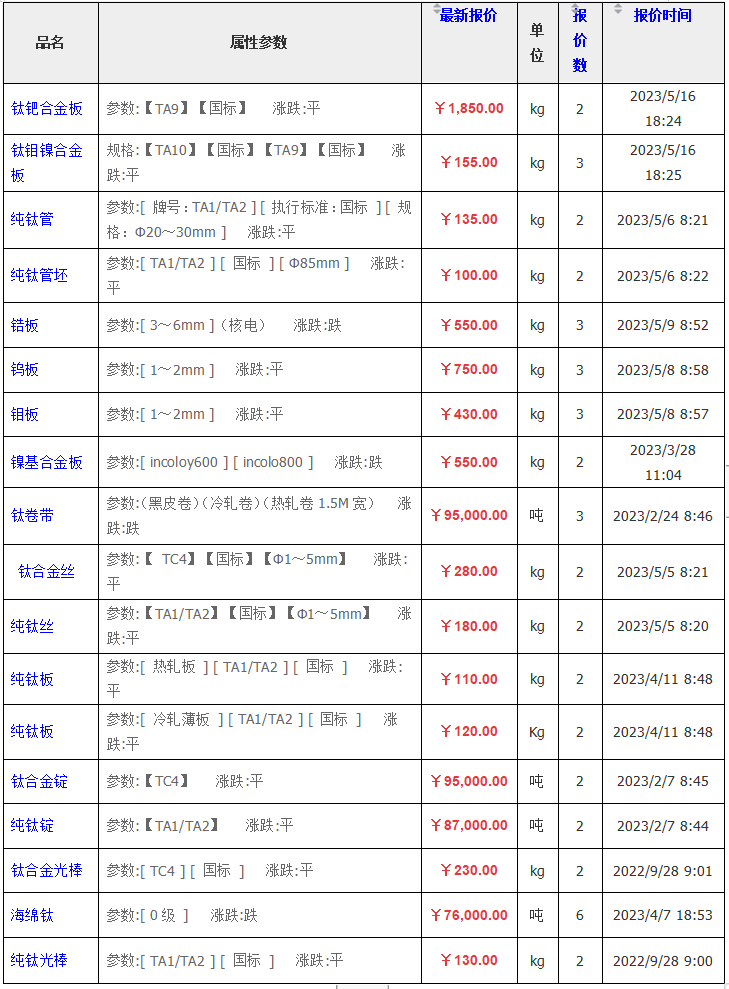 二、國內(nèi)市場(chǎng)海綿鈦價(jià)格行情