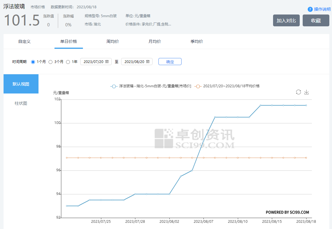 三、浮法玻璃近一月價(jià)格曲線