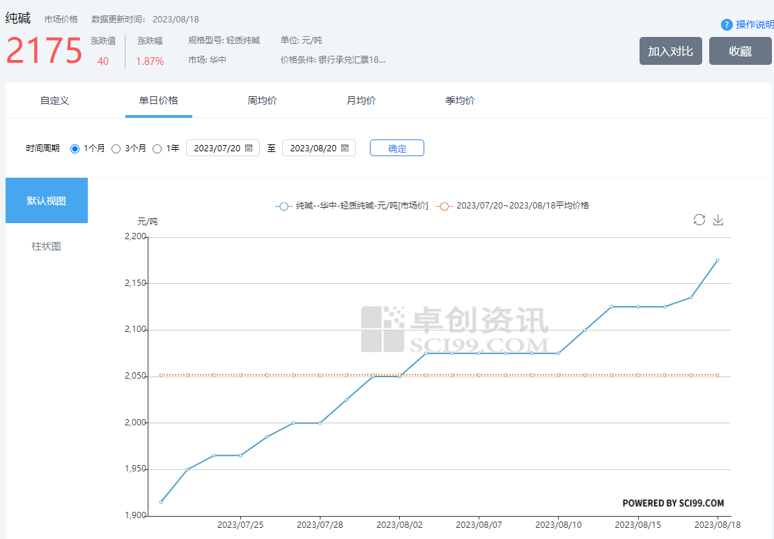 四、玻璃用純堿近一月價(jià)格曲線