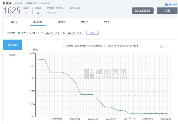 三、呂梁地區(qū)近一月主焦煤價格變化曲線